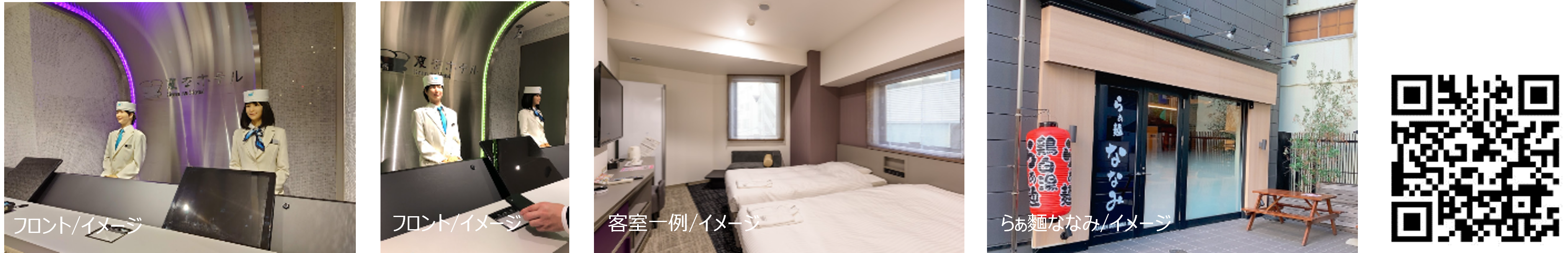 ホテル1階に新規オープンしたレストランのらぁ麺ななみは、看板メニューの鶏白湯らぁ麺、はまぐりらぁ麺が人気のラーメン店です。12月7日(木)までに変なホテル東京 浜松町にご宿泊のお客様限定で、ご宿泊時18:00~21:30にお食事いただくと、アルコールまたはソフトドリンク1杯を無料で1回ご提供いたします。フロントではロボットがチェックインをお手伝いし、最短10秒でチェックインが完了するエクスプレスチェックインを導入しております。