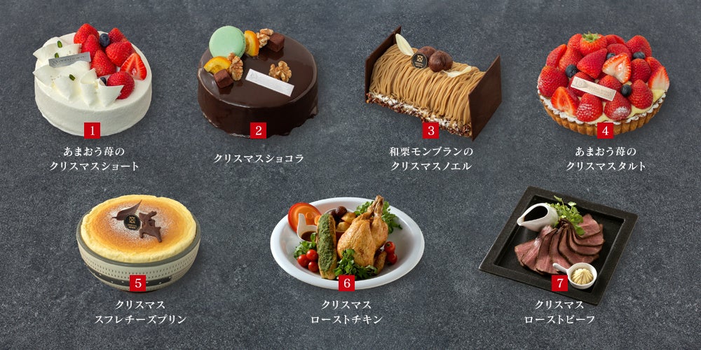 福岡県産あまおうを贅沢に使用した「あまおう苺のクリスマスケーキ」や「あまおう苺のクリスマスタルト」をはじめ、フランスの高級チョコレート「ヴァローナ」を贅沢に使用した濃厚なチョコレートケーキ「クリスマスショコラ」、Cafe & Bar CROSS POINTで大人気の”しぼりたてモンブラン”を特製クリスマスノエルに仕立てた「和栗モンブランのクリスマスノエル」、小石原焼の器でお渡しする濃厚なオリエンタル博多プリンと口どけのよいスフレチーズにキャラメルをサンドした「クリスマススフレチーズプリン」といったバリエーション豊かな5種類のケーキをご用意いたしました。さらに、じっくりと焼き上げたクリスマスローストチキンにシェフ厳選のクリスマスローストビーフなど、パーティーを華やかに彩るメニューも同時販売いたします。当ホテルのパティシエこだわりのスペシャルなクリスマスケーキで、ご家族やご友人、恋人と共に笑顔溢れる素敵なクリスマスをお過ごしください。