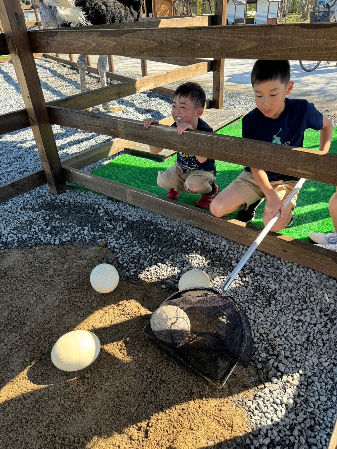 当牧場YouTubeで大人気の「ダチョウの卵採卵動画」を訪問者の皆様も体験できる特別なコーナーをこの度新設しました。実際に動画のように網でダチョウの卵を手繰り寄せる体験をしていただけます。
