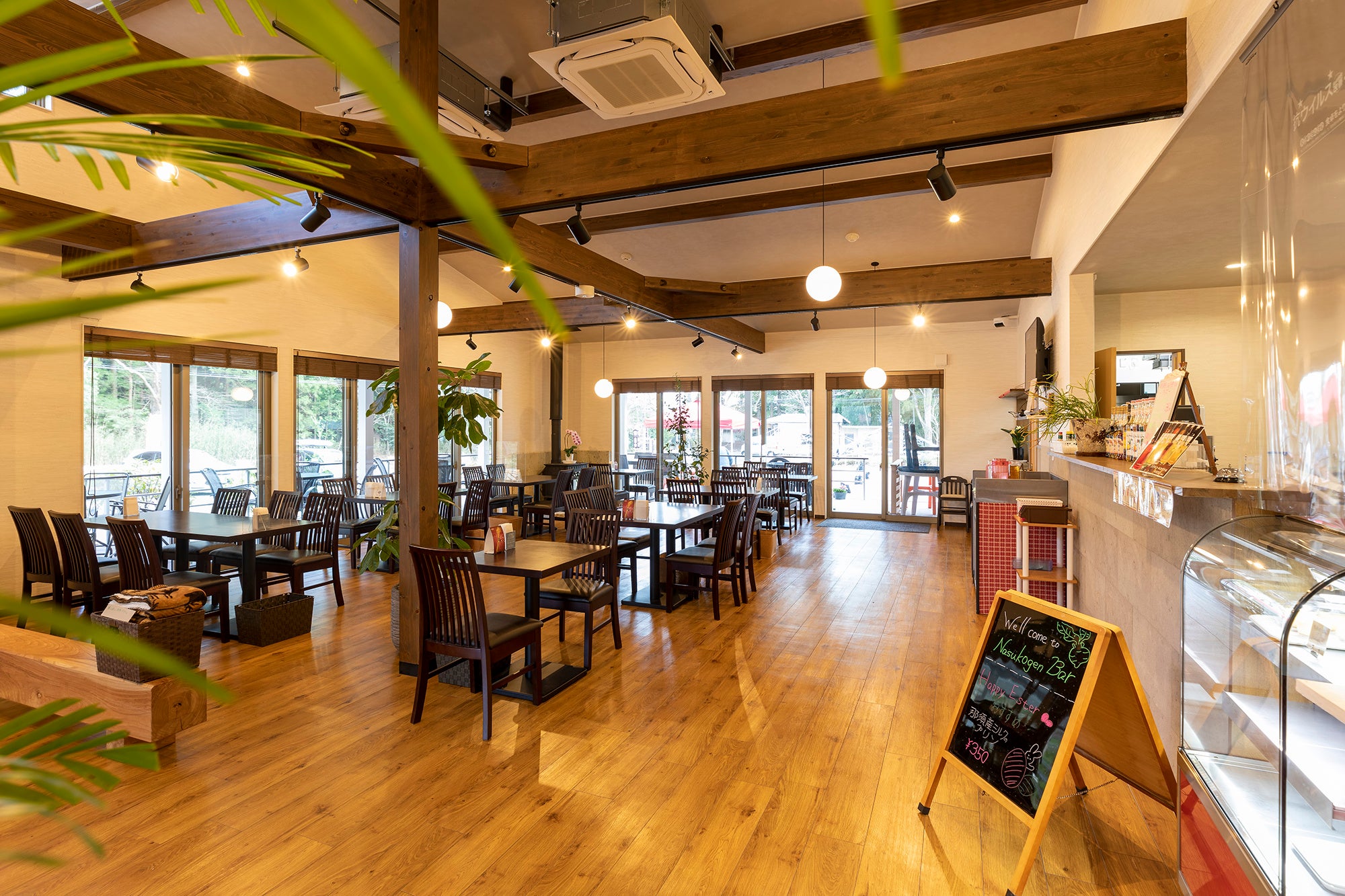 那須高原和牛ハンバーグ等、那須産、栃木産への食材へのこだわりと、味だけでなく視覚的にも楽しめる料理がコンセプト。テラス席ではワンちゃん連れの方のご利用も可能