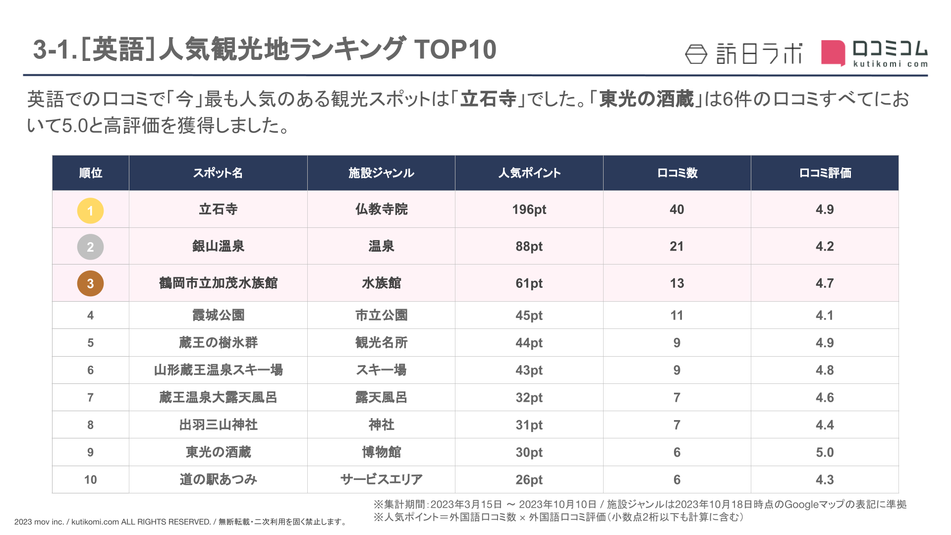 ・外国語口コミ数&口コミ率 TOP10 のスポット
