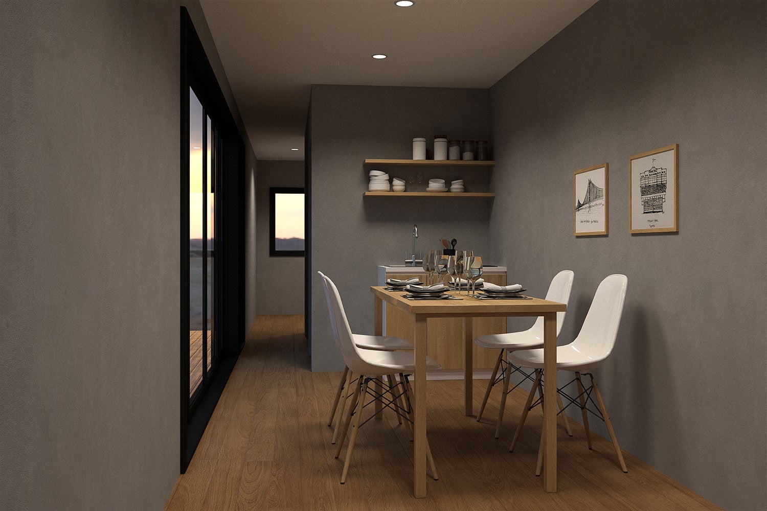 「フランクなキャンプ=フランピング」をテーマとした客室は、広々とした室内に冷暖房完備、専用のキッチン、シャワールーム、ベッドルームとまさにホテルライクな快適空間が広がります。
