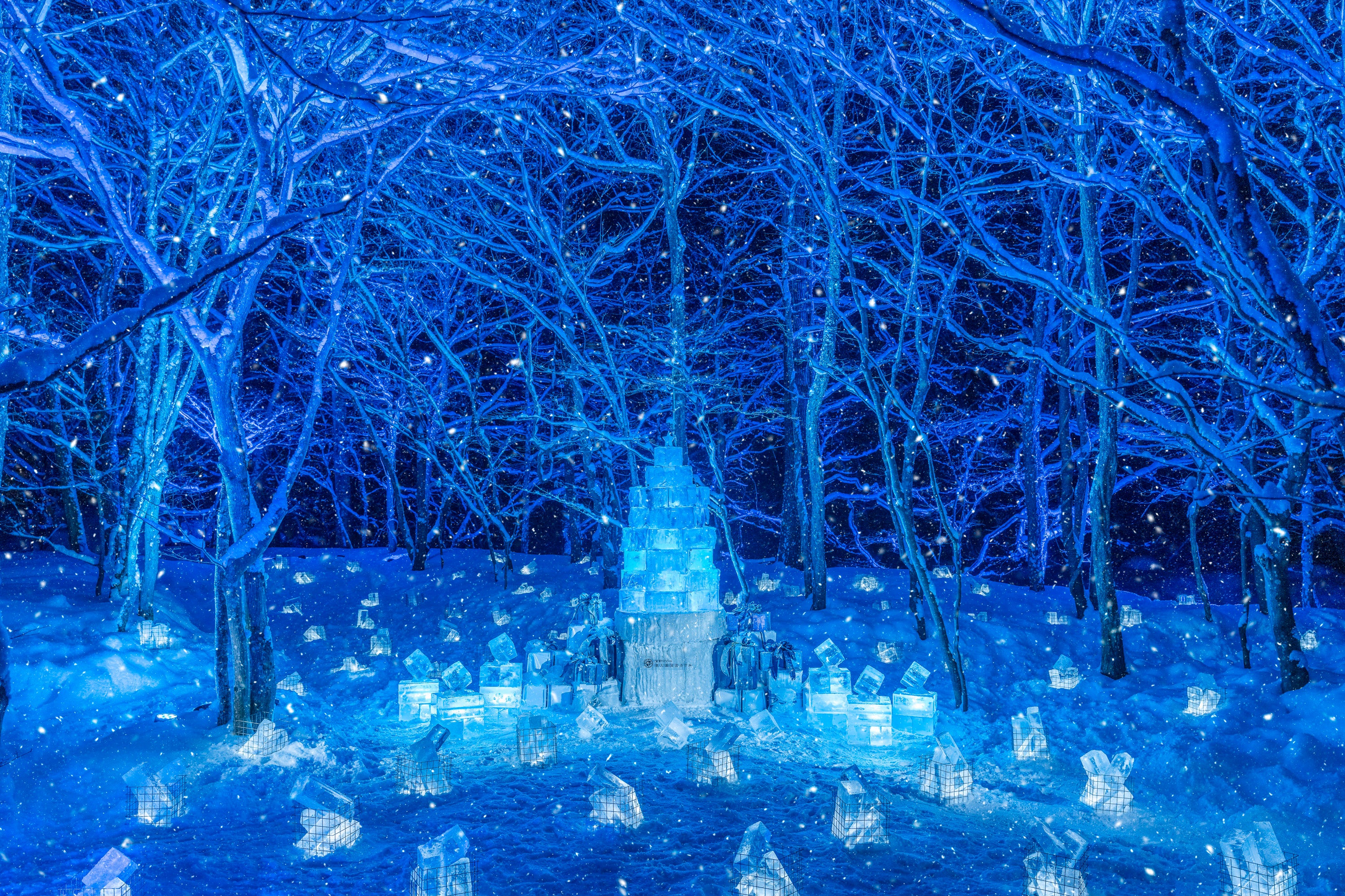 特徴1 氷瀑クリスマスツリーと100個の氷瀑ランタンが演出する幻想的な空間【Power Up】