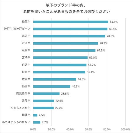 一番割合の低いもので4.5%となりましたが、ここに挙げたものもブランド牛のごく一部です。ブランド牛ごとに知名度にはかなりの差があることがわかります。