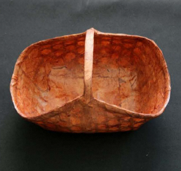 竹のかごに石州和紙を貼り、自分だけのオリジナルのパンかごをつくります。柿渋と刷毛をお持ち帰りいただき、糊が乾いた後、ご自宅で柿渋を塗って完成させます。
