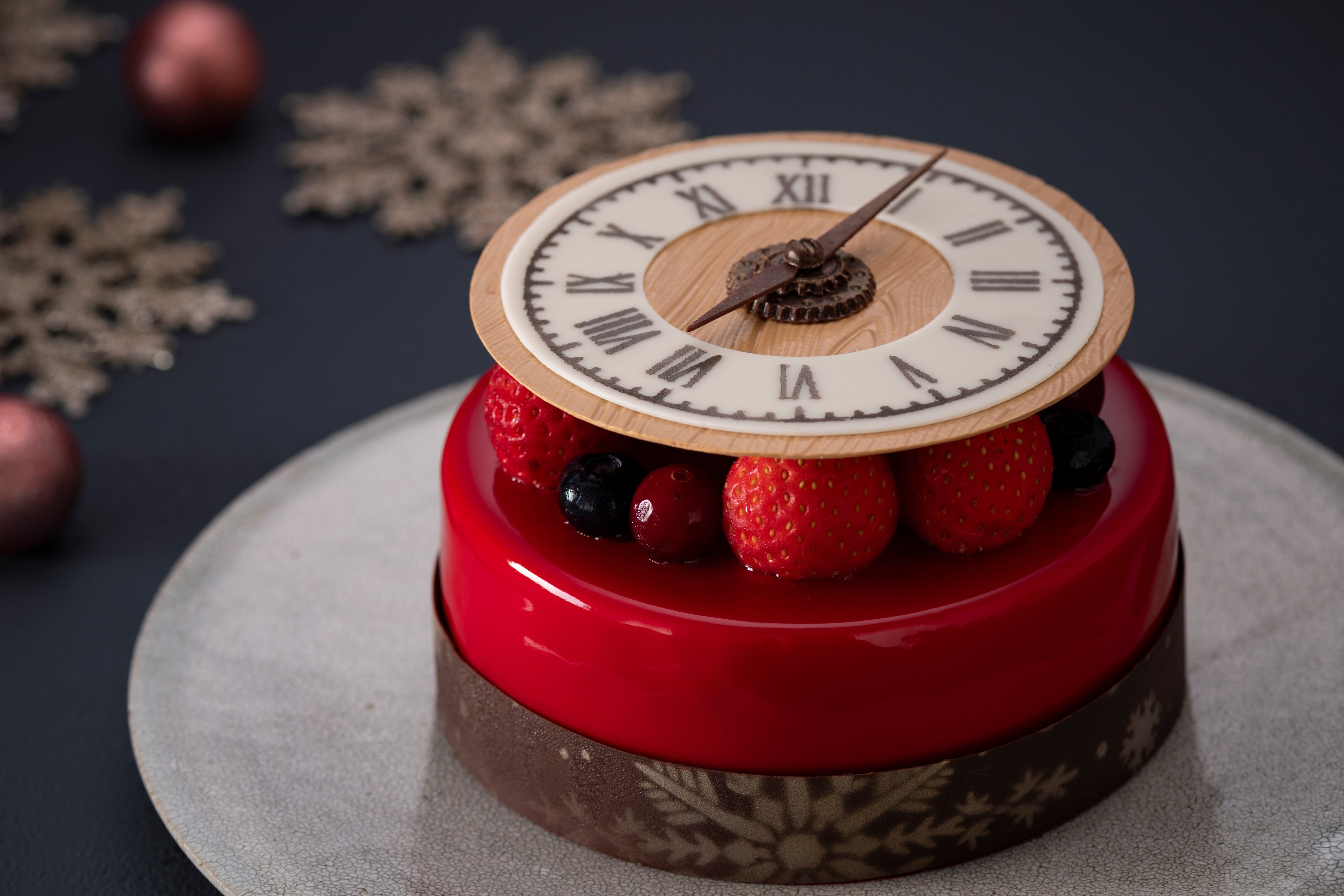 2022年のホテル開業以来はじめての販売となるクリスマスケーキを、1日5台限定でご用意いたしました。ケーキ上部の印象的な時計は、文字盤や針の細部まですべてチョコレートで出来ています。ひとつひとつ丁寧に作り上げられたクリスマスケーキは、パティシエのこだわりが詰まった逸品です。上質な大人の味わいに加え、遊び心にあふれるケーキは、年に一度の心ときめくクリスマスに華を添えることでしょう。