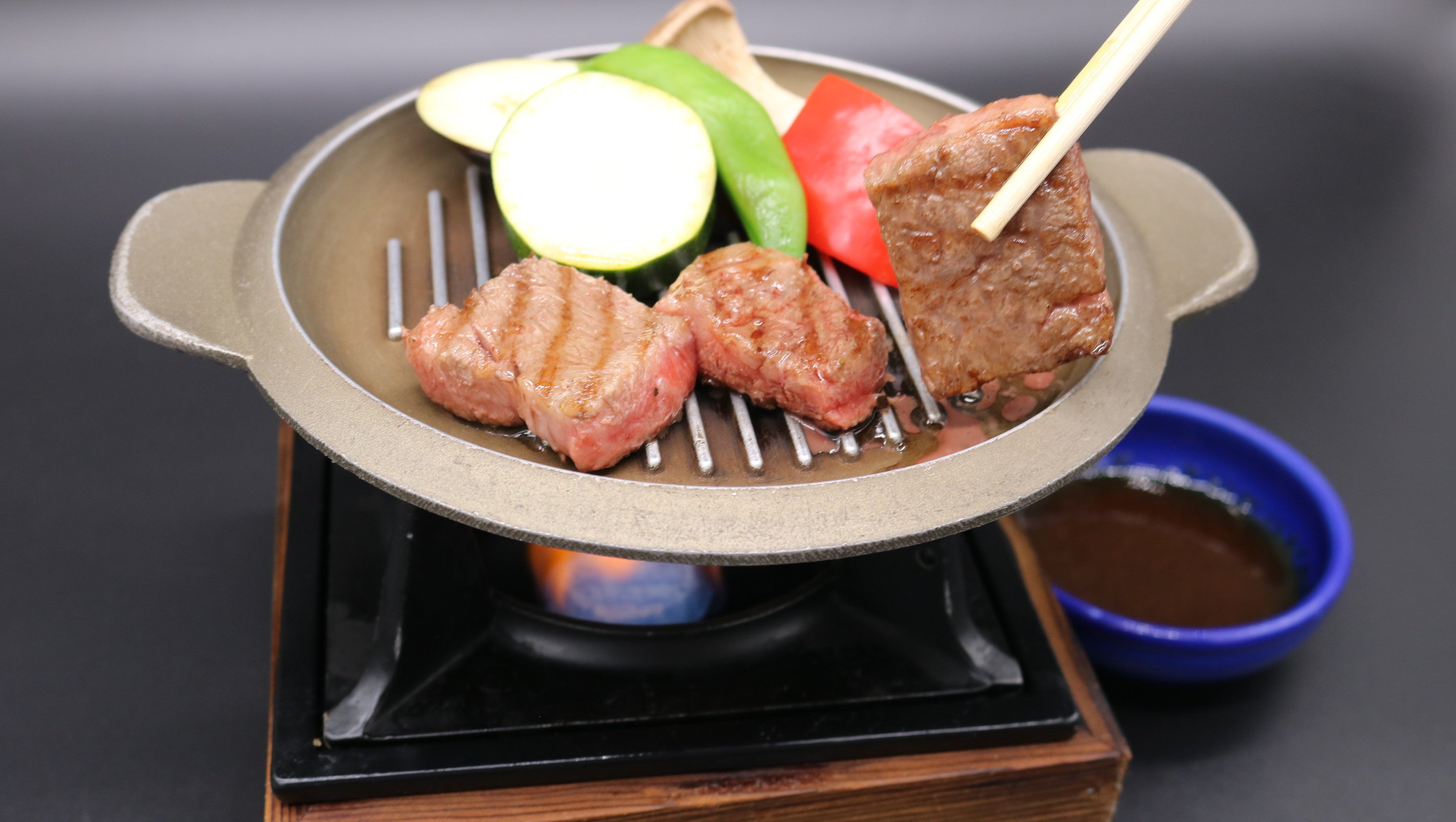 ご自身でお好みの焼き具合に調整出来るように、お席に鉄板をご用意いたします。