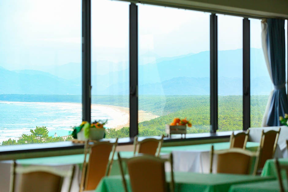 朝食のレストラン・キャッスルビューからは、「唐津城」、「唐津湾」、日本三大松原「虹の松原」が一望できます。