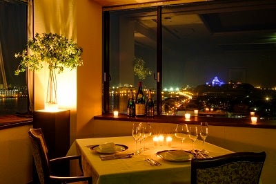 レストランでのお席は、唐津城が眺められる大人気のお席をご用意し、ライトアップされた唐津城の幻想的な景色が広がります。
