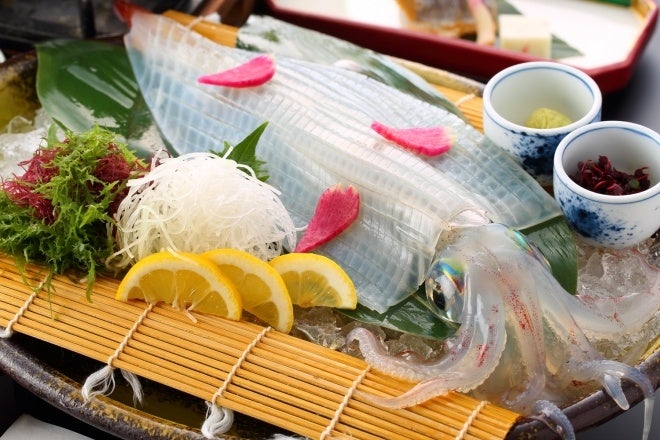 ディナーでは新鮮なイカを活造りでご提供。