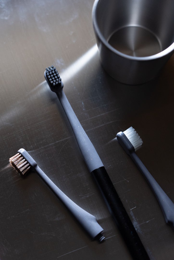 • 毛材が花馬毛、ひまし樹脂、ナイロン 3種類 デザインの違いだけではなく、歯科医がこだわったそれぞれの硬さの違いがあり、それぞれの自分好みの磨き心地を楽しめます