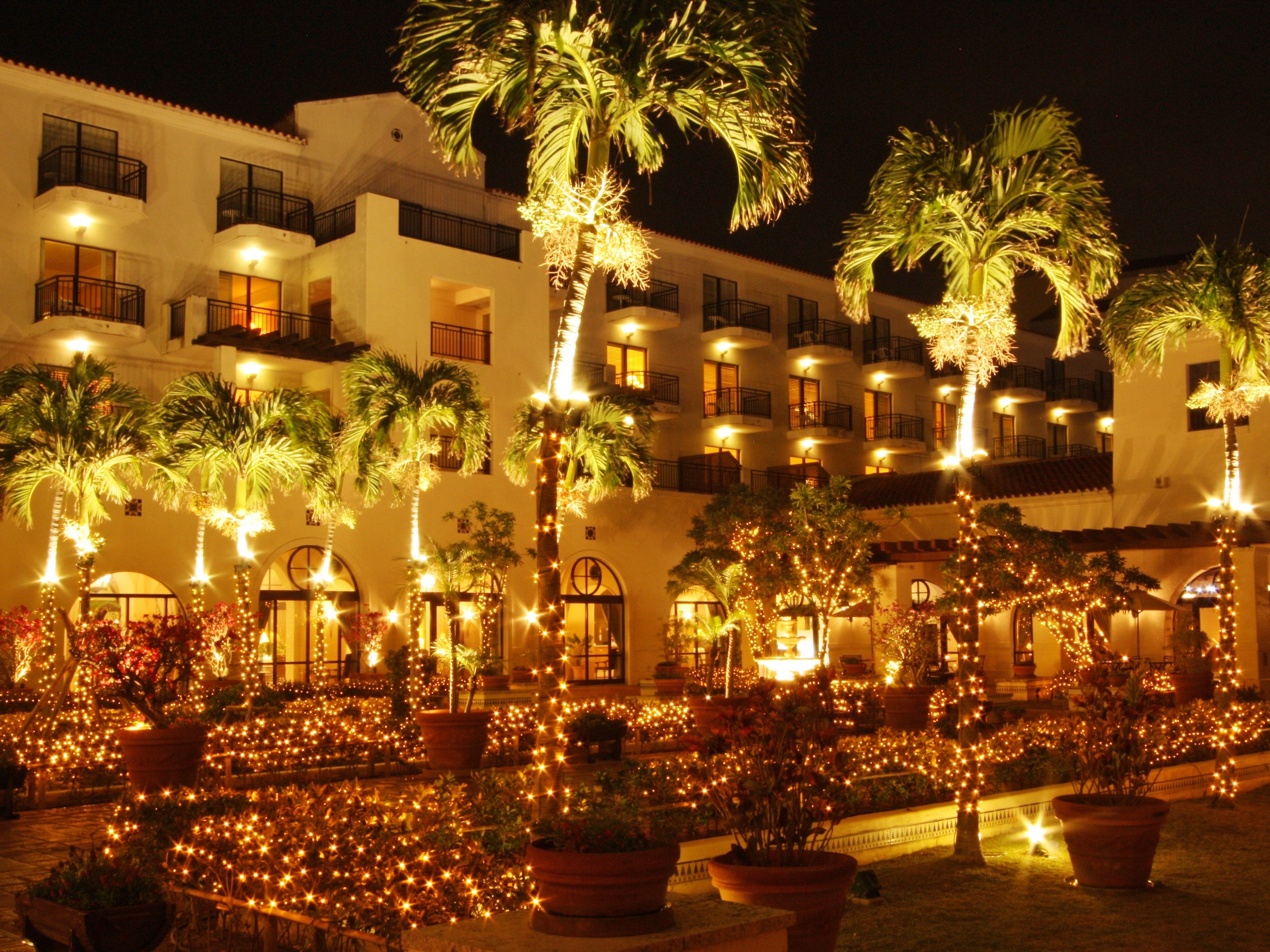 パティオ(中庭)やプールサイドをキャンドルカラーのイルミネーションで彩ります。イルミネーションはLED電球を使用しており、環境にやさしい太陽光発電による「グリーン電力」で点灯します。