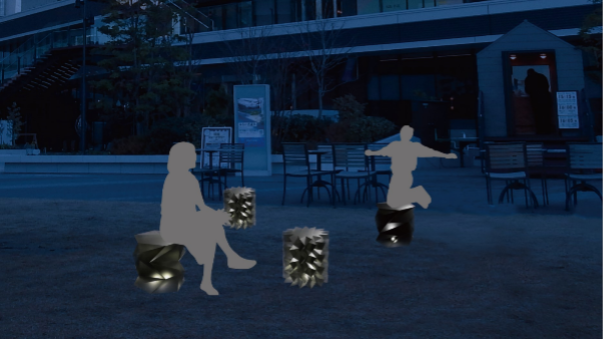 地上に到達した発光生物達は、”人が動かせる外灯”として人間界に馴染もうとします。一般的な外灯は静的で夜間空間の用途を限定しますが、発光生物たちは用途や状況に応じて自由に動かせることで周囲の新たな魅力や、居場所を発見する相棒となります。彼らとともに暗闇のウォーターズ竹芝の新しい魅力を発見していただければ幸いです。