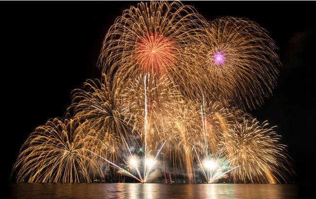 ・花窟神社(三重県熊野市)前の海岸で、1月1日午前0時から打ち上げられる花火を見る