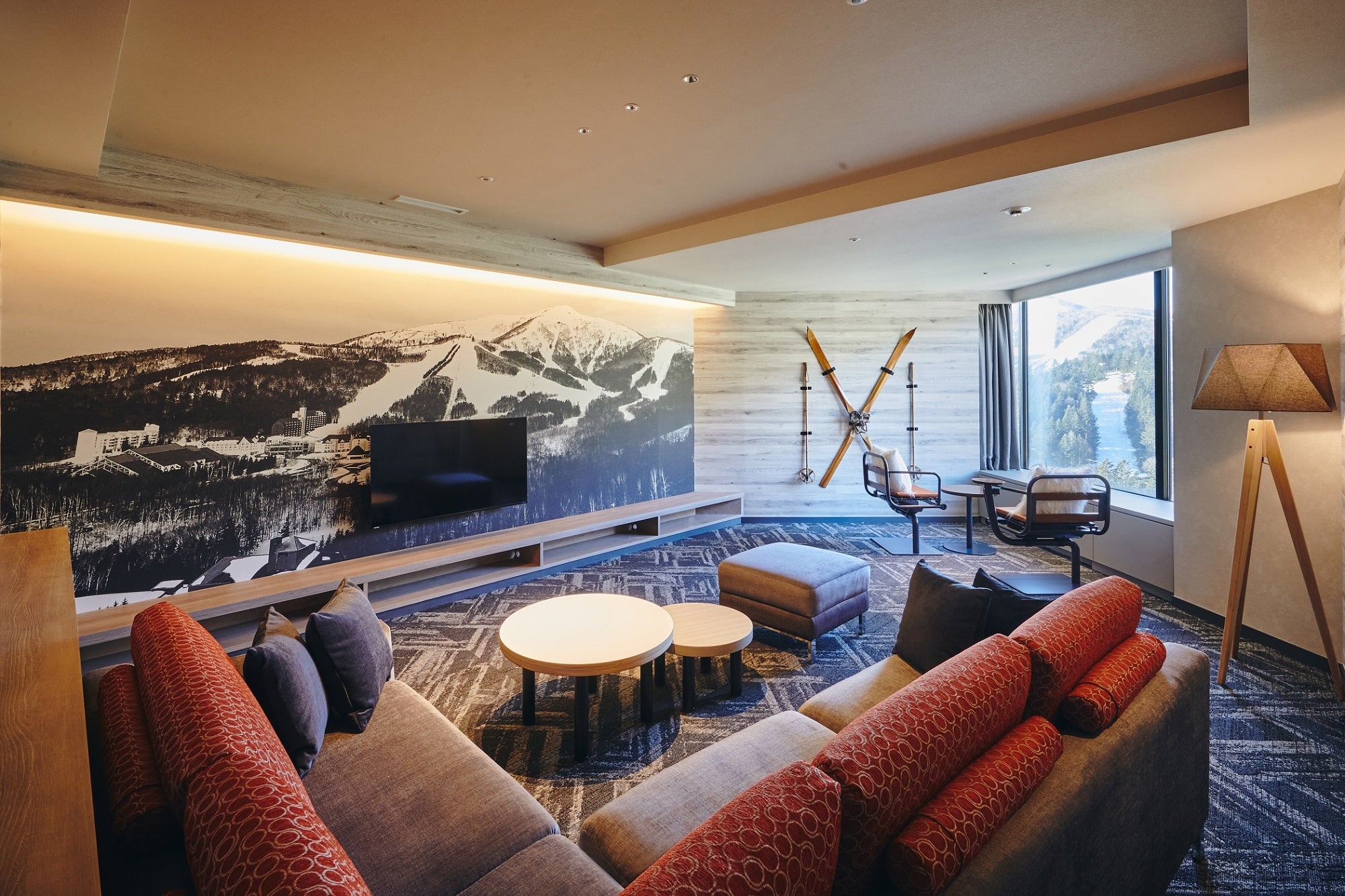 部屋はスキー旅に嬉しい機能とデザインを兼ね備えたスキーヤーズスイートルームです。室内には、スキーブーツを乾燥できるブーツヒーターを装備。実際にトマムのゲレンデで使われていたシングルリフトをリメイクした椅子や、クラッシックな木製のスキー板をオブジェとして設えました。ホテルからは、ストレスなく直接ゲレンデへスキーインスキーアウトできます。滑走後には、展望ジェットバスやプライベートサウナでゆったりと心と身体を整えられる贅沢な仕様。さらに、最終日は荷物の多いスキーヤーに優しい14時のレイトチェックアウトで、最終日の滑走後も安心して帰りの支度ができます。
