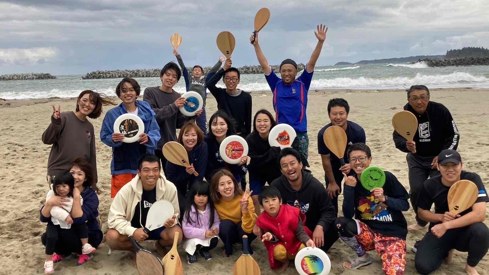 杉村自身は、かねてよりフレスコボールの普及活動以外でも気仙沼に足を運んでいましたが、特に今夏の「フレスコボールリクゼンタカタカップ2023」翌週に開かれた「B-SPO FESTA 2023 IN KOIZUMI」における体験会を通じ、熱量の高いメンバーに出会えたことがクラブ設立に向けた大きな転機に。10月29日(日)に杉村を発起人としたフレスコボール体験会が市内・小泉海岸で行われ、この日をもって正式にクラブを結成する運びとなりました。