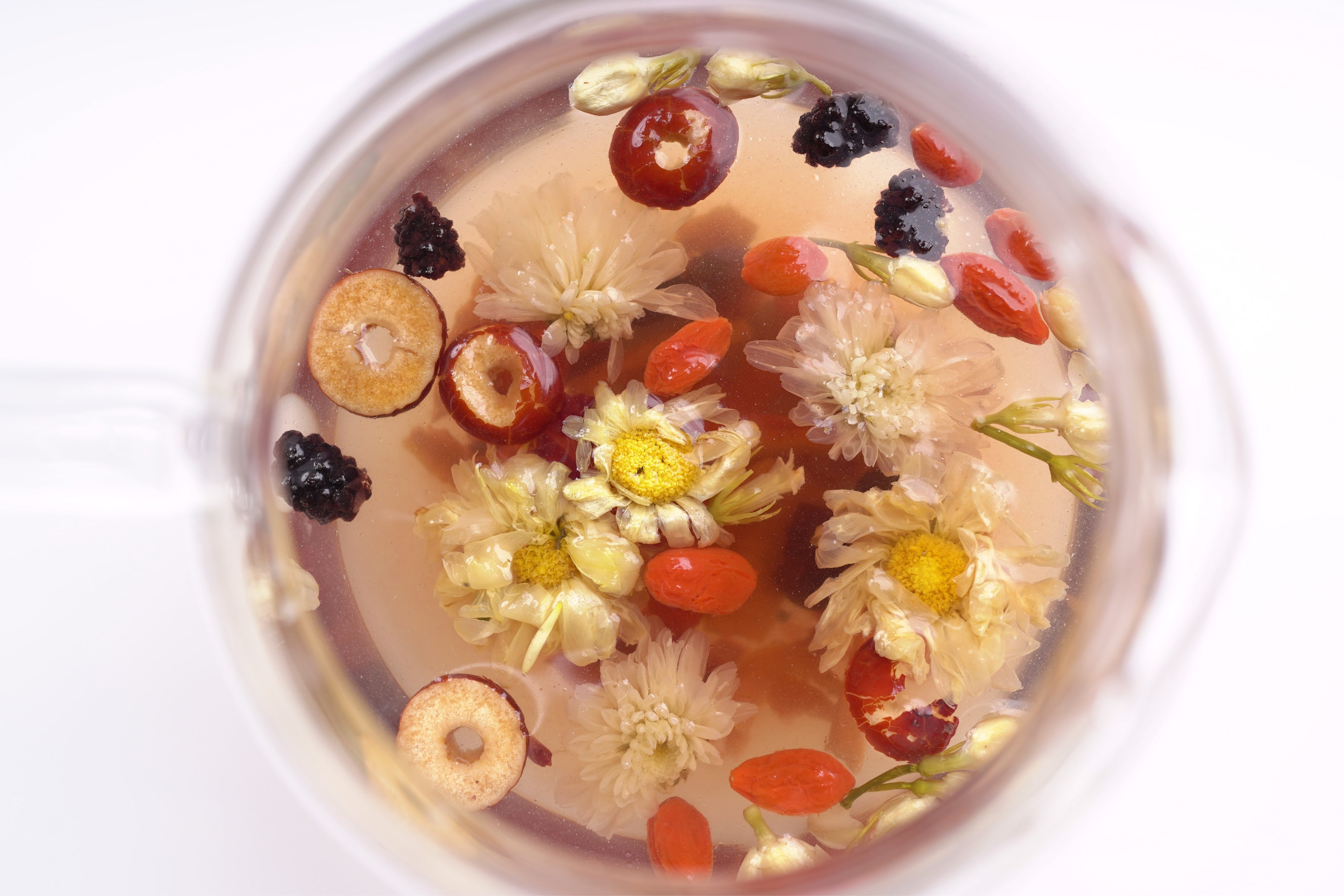 (華やかな花々とレモンの爽やかな味わいのお茶)