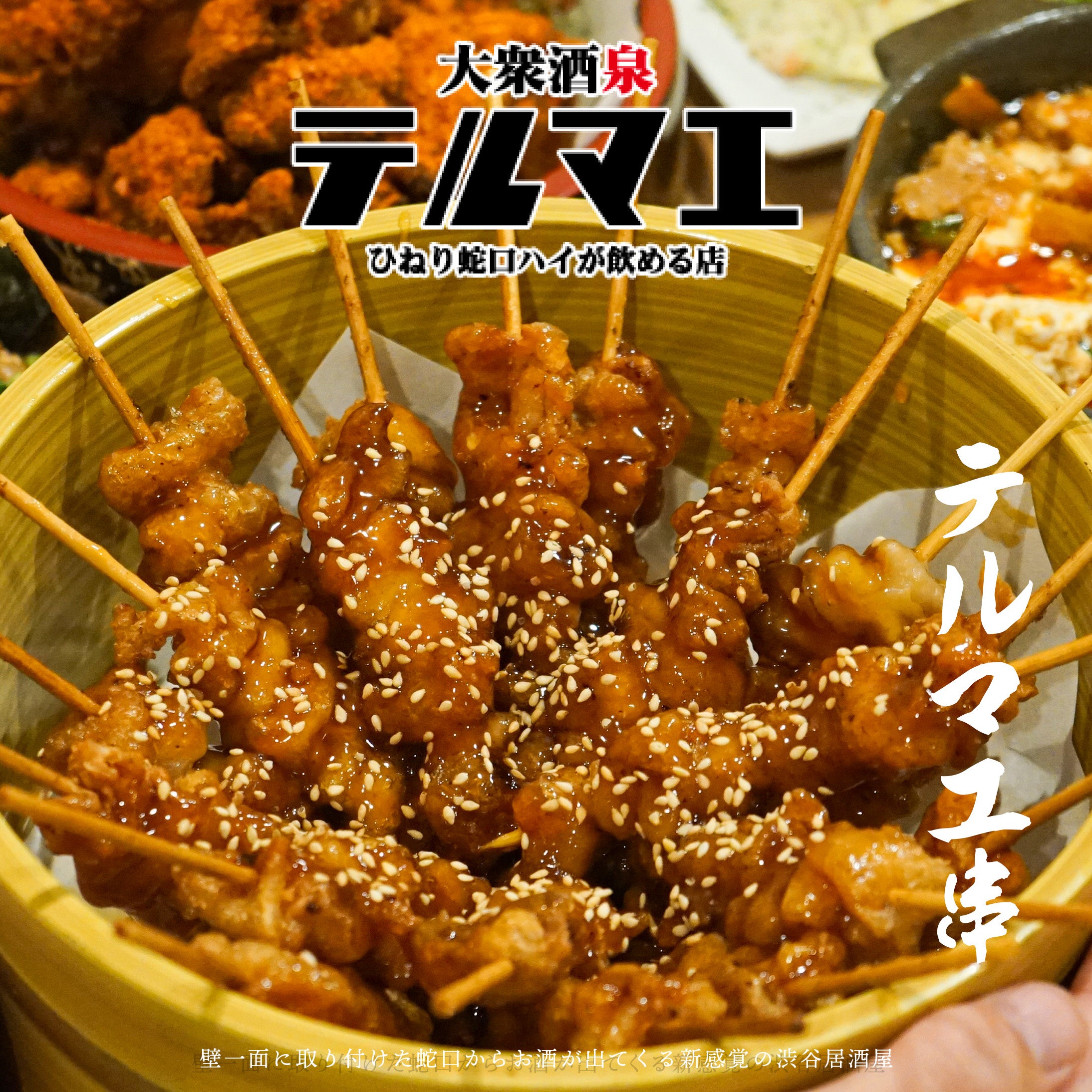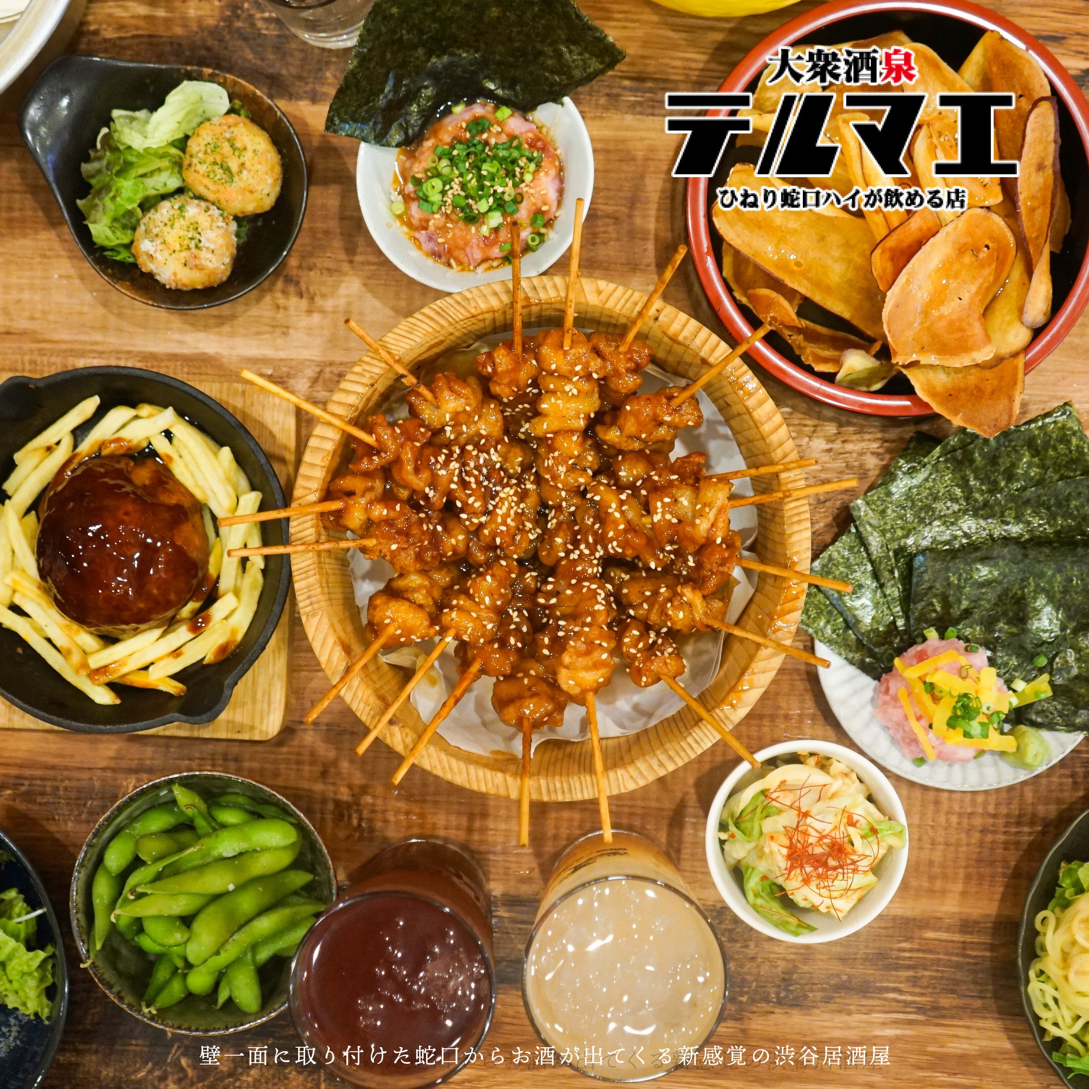 【ひねり蛇口ハイ 大衆酒泉テルマエ】は、伝説の酒の泉「酒泉」の存在を信じ発掘に成功した初代テルマエが世界各地の様々な酒泉を持ち寄り、酒泉を世に広める為に作り上げたお店である。