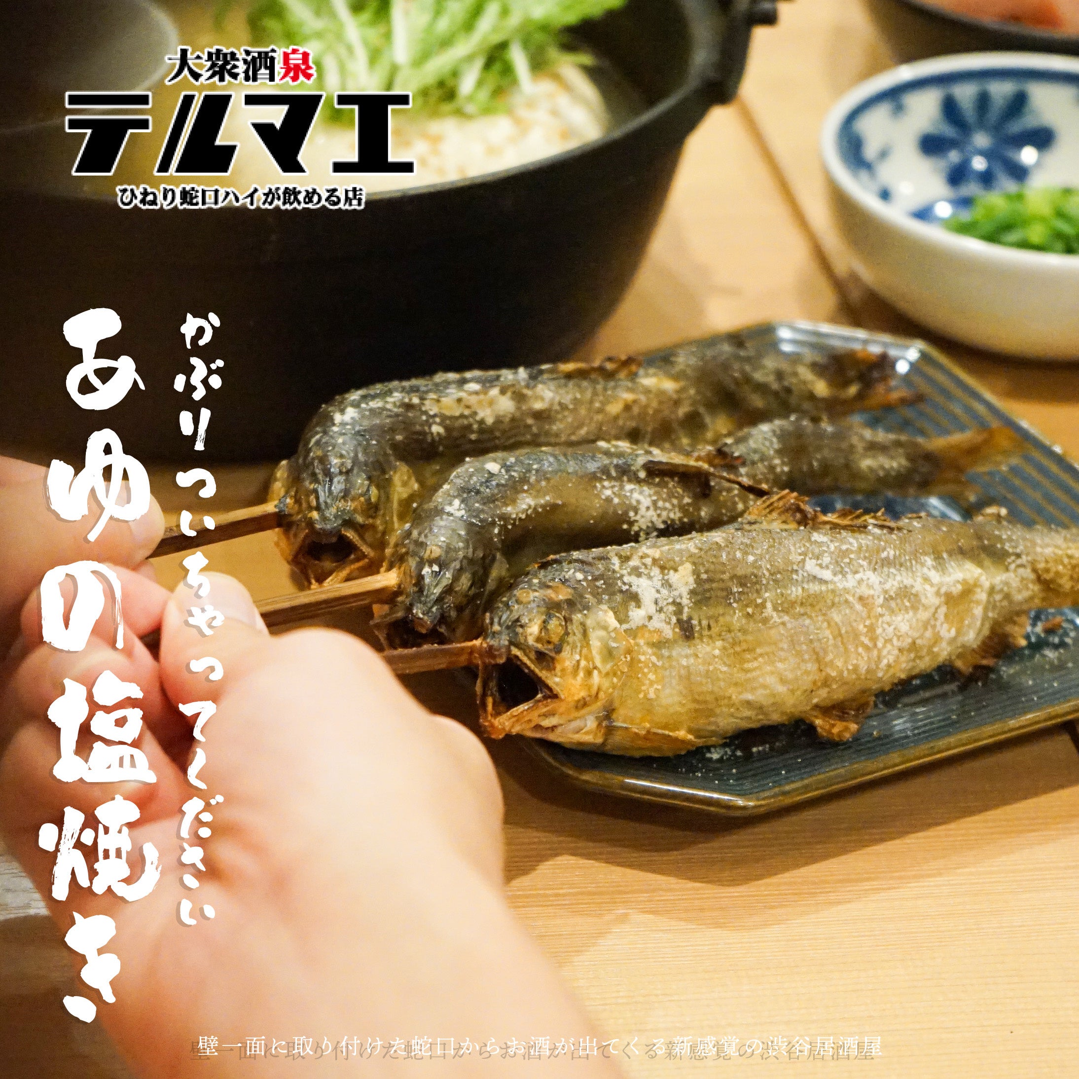 がぶりとかぶりつける鮎は絶妙な塩加減でお酒が進む事間違いなし。