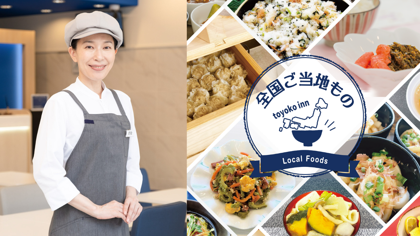 なお、全東横INN(一部、海外店を除く)で、その土地ならではのご当地メニュー「全国ご当地もの」をご用意しています。