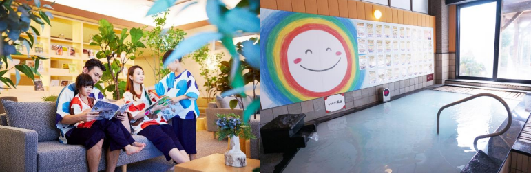 OYUGIWAは「お湯のまわりを、“えがお”でぽかぽかに。」というコンセプトのもと、多彩なお風呂やボディケア・岩盤浴、おいしい食事だけでなく、地域社会のお子さまとファミリーへ“えがお”をお届けするためのさまざまなイベントや、社会貢献活動を行っております。