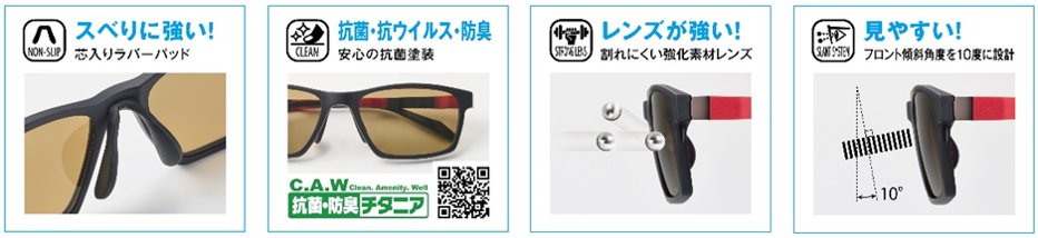 「メガネ屋がチューンしたハイパフォーマンス偏光サングラス」として釣り専用に企画された【STORM RIDER】シリーズ。日々進化する眼鏡と同レベルの快適性や耐久性かつコストパフォーマンスを重視して企画製造。シーンに合わせたレンズカラーバリエーションで割れにくい強化素材の偏光レンズを使用し、紫外線カット率や偏光度は99%以上の精度を誇ります。(※一部レンズカラーを除く。)