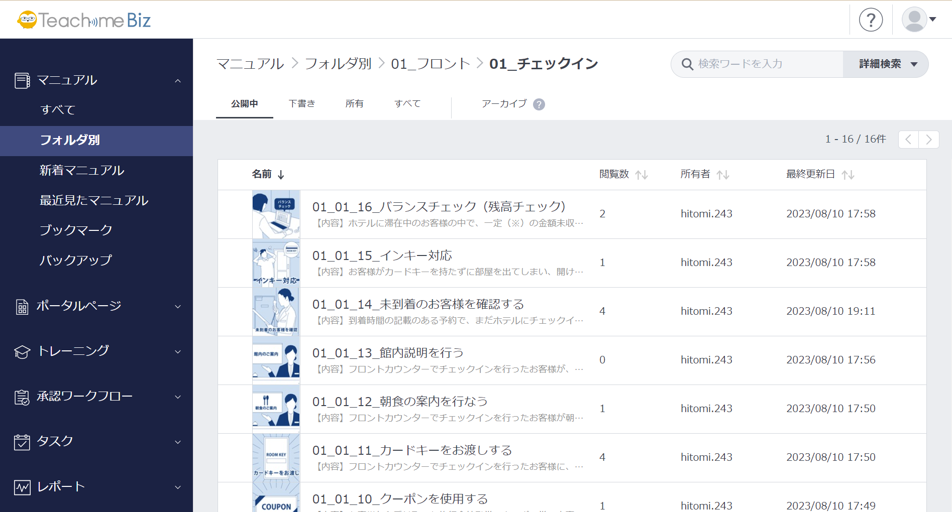 「Teachme Biz 宿泊パッケージ」は、宿泊業界で必要とされる基本業務のマニュアルを130項目のリストにして提供することによって、宿泊関連企業のマニュアル作成業務の負担を軽減し、人手不足の解消に貢献します。三井不動産ホテルマネジメントが運営するホテルにも導入を予定しており、新人教育などで活用していきます。