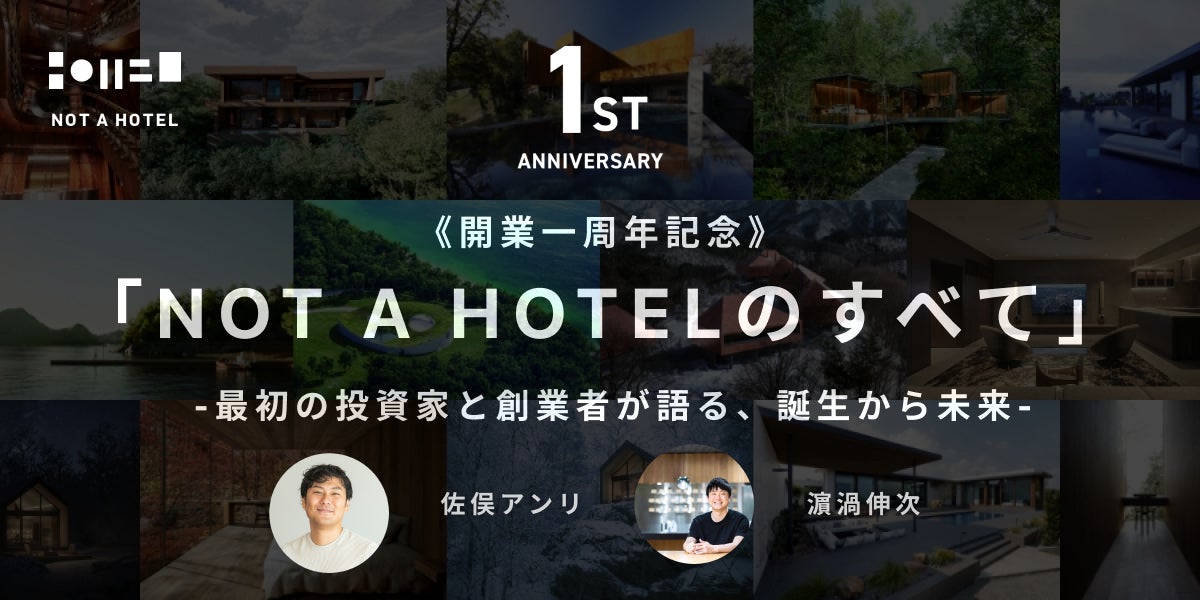 開業1周年を記念し、NOT A HOTELを投資家の立場からご支援をしていただいているANRI代表の佐俣アンリ氏とNOT A HOTEL創業者兼CEOである濵渦伸次による対談イベントを11月21日(水)に開催します。