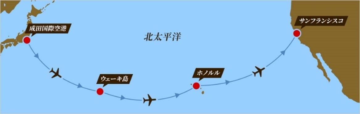 (2) 運航経路:成田-(ウェーキ島上空通過)-ホノルル-サンフランシスコ ※ウェーキ島は着陸しません。