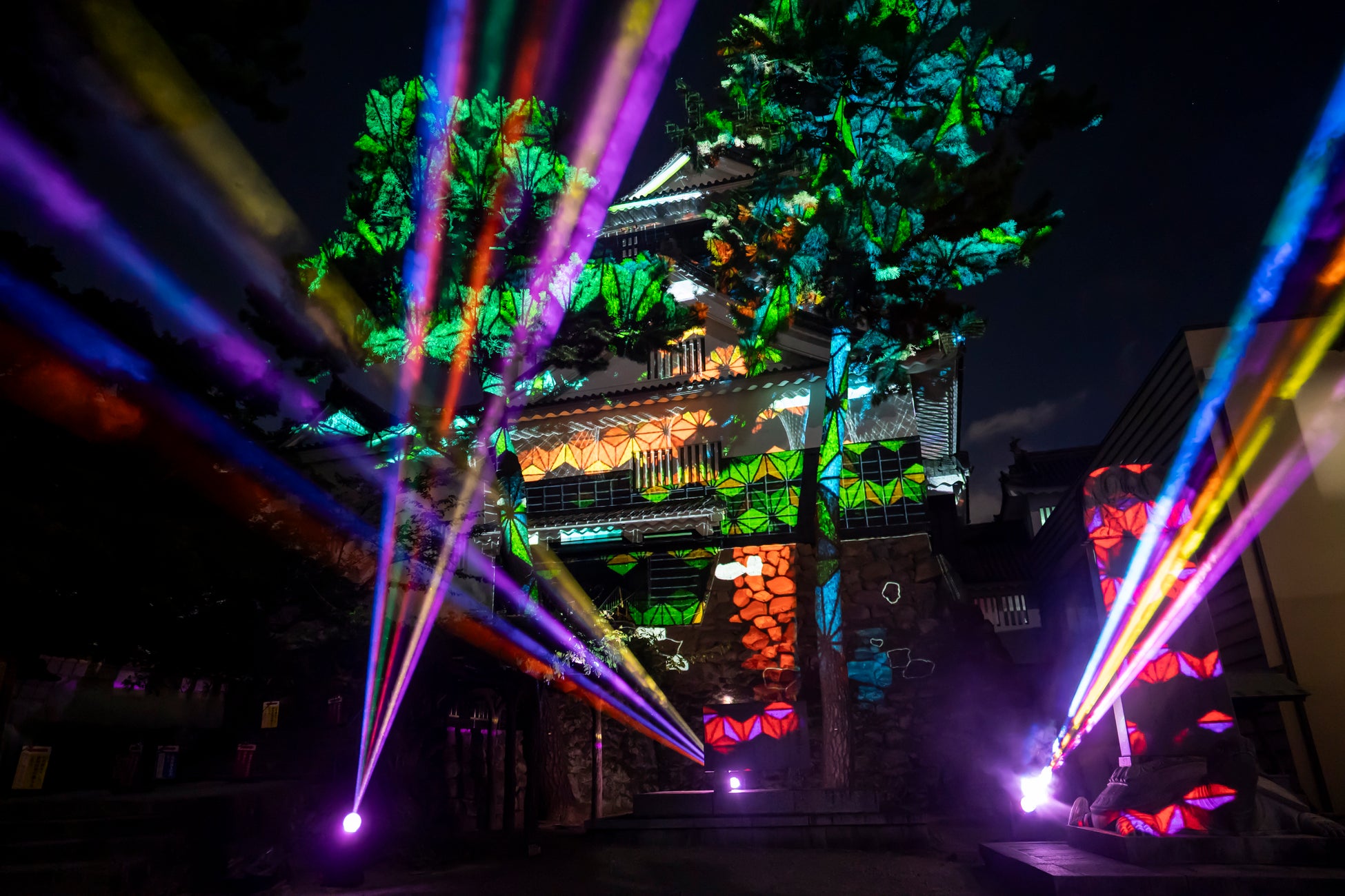 【内容】 「岡崎城下家康公夏まつり第75回花火大会」の開催と開局40周年を迎えたテレビ愛知による花火大会の地上波初生中継に合わせて、徳川家康生誕の地で日本100名城・岡崎城天守閣に岡崎市の文化や歴史、伝統産業「三河花火」などをモチーフにしたデジタルアートコンテンツのプロジェクションマッピング映像を投影しました。