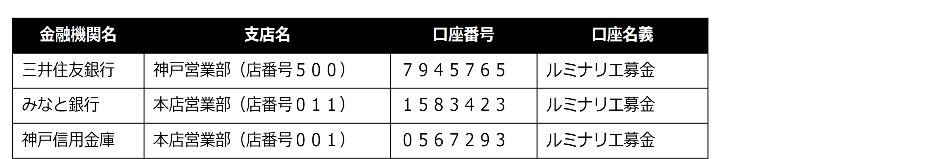 神戸ルミナリエでは年間を通じて銀行振り込みによる募金が可能です。(常時開設している募金口座)