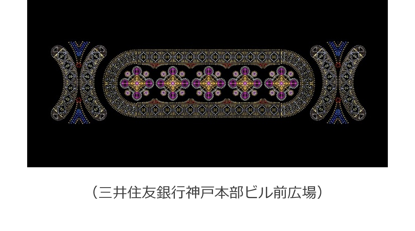 三井住友銀行神戸本部ビル前広場の三方を囲うように高さ約7.2m、幅約14m~18mの光の看板作品を設置するほか、ツリー状のルミナリエ作品(高さ約10m直径5.6m)を設置します。