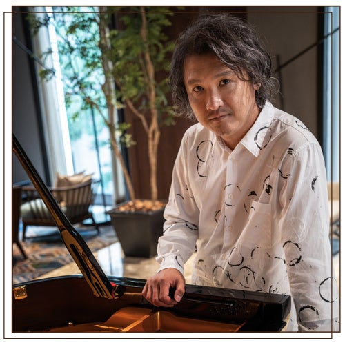 スタンダードやオリジナル、⽇本の唱歌、純粋即興等、ジャンルにこだわらない彼のピアノの特徴の⼀つに、美しく多層的な⾳⾊にある。