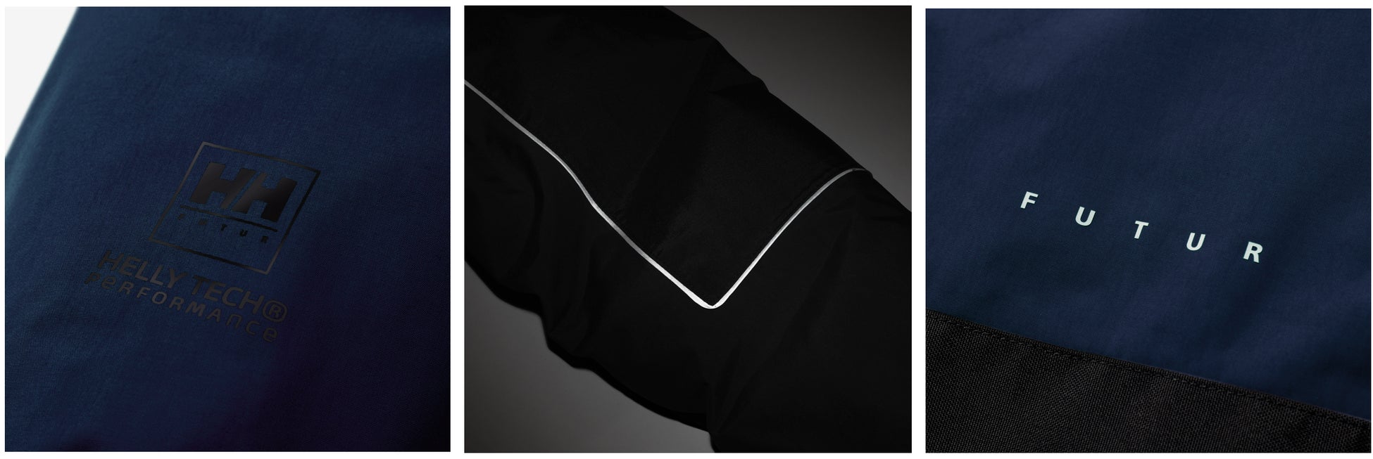 デザインの特徴として、肩から袖にかけて90年代のジャージをイメージしたパイピング仕様を追加し、同時にチェストポケットも取り入れて、カジュアルなシーンでの使いやすさを向上させました。前立てと袖には、ヘリーハンセンとFUTURのコラボレーションロゴがプリントされ、後ろ裾にはFUTURのロゴがアクセントとなっています。