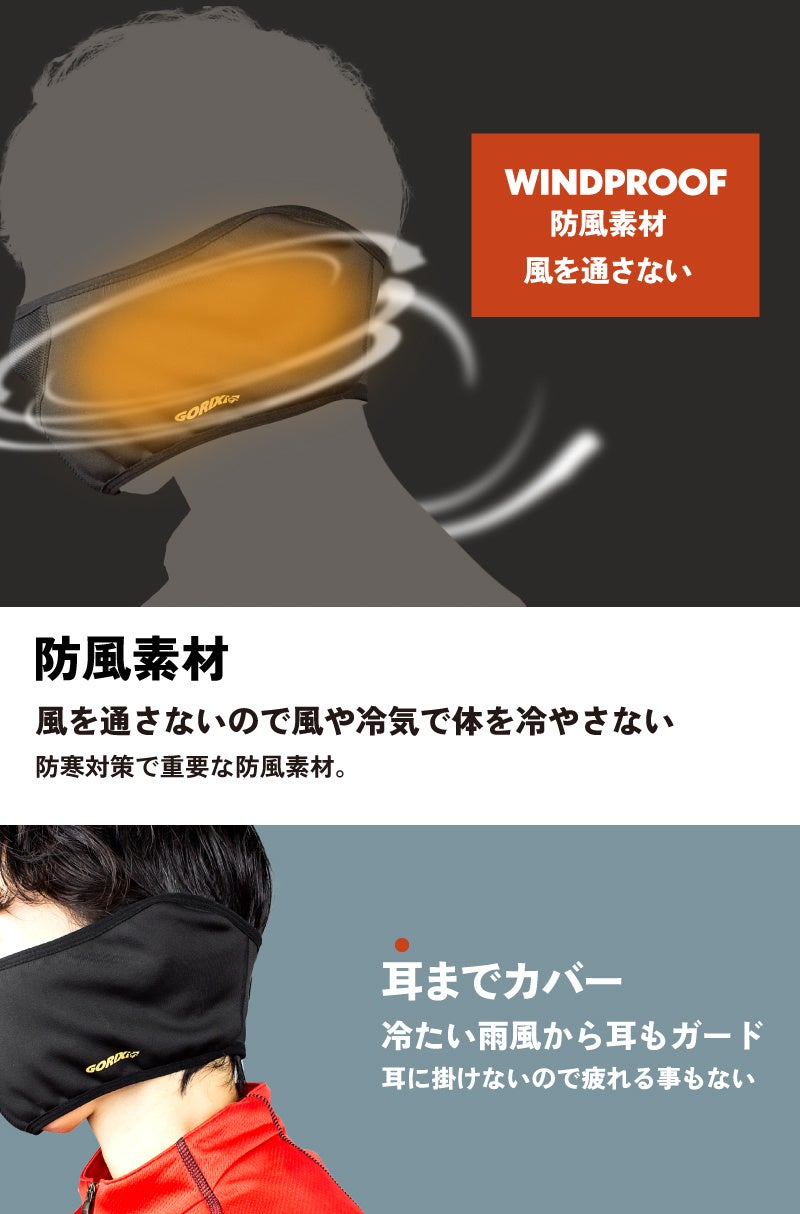 耳に掛けない・耳まで暖かい冬用スポーツマスクです。