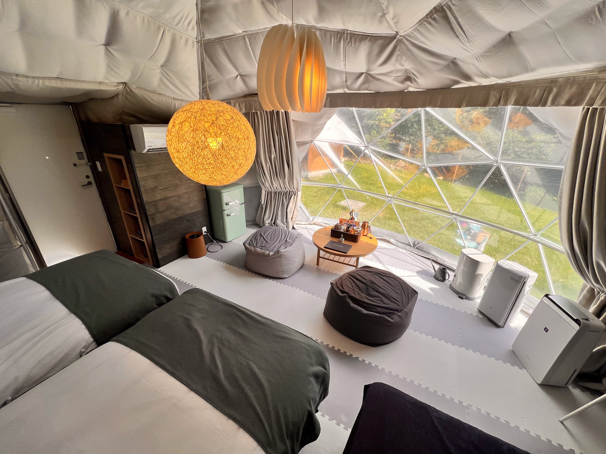 ドームテントの一部はクリア仕様になっており、ドッグランで走り回る愛犬の姿をお部屋からご覧いただく事も可能です。