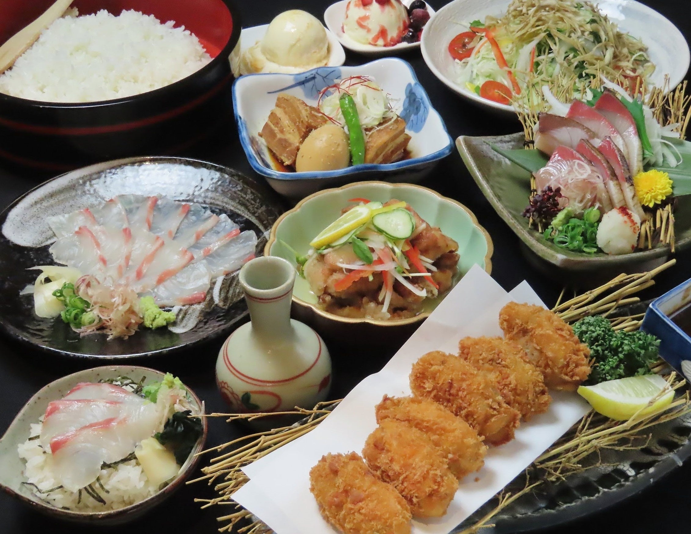 ●広島産牡蠣フライ ●柔らか豚角煮 ●宇和島鯛飯 ●デザート