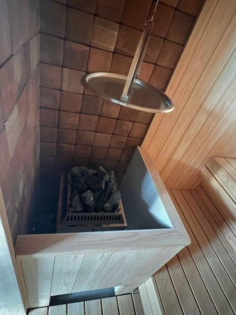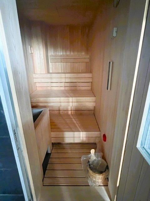 真鶴で採掘される小松石を活かした貸切家族風呂にはサウナを完備。