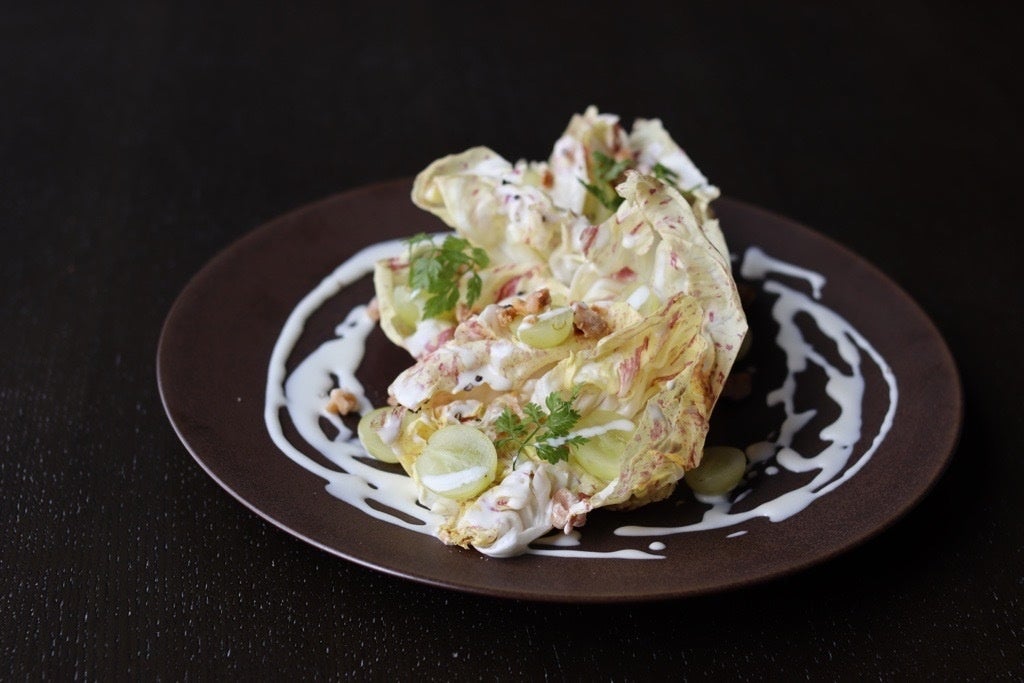 カステルフランコと山梨県産契約農家のシャインマスカットのインサラータゴルゴンゾーラと胡桃
