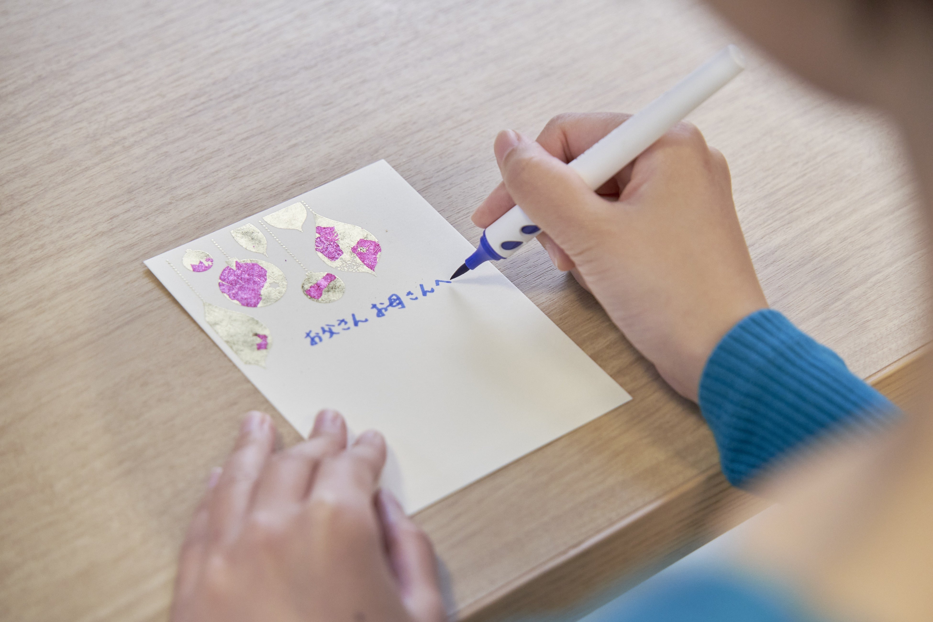 金沢ならではの絵柄の用紙から好きなものを1つ選び、数種類の箔を自分で組み合わせて、世界に一つだけの金箔レターを作ります。完成したものは、旅の思い出として持ち帰ったり、その場で郵便で送ったりすることが可能。クリスマスに合わせた大切な人への思いをしたためる体験です。
