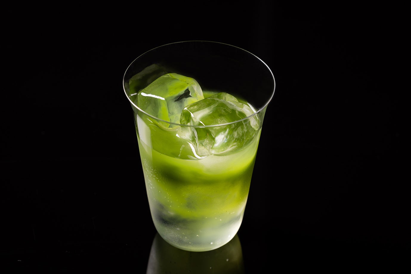 [Kome, hendrick’s gin, tonic, matcha]京都宇治の高級抹茶とクラフトジン、米焼酎「The SG Shochu KOME」を使用したハイブリッドジントニック。美しい宇治抹茶の層が飲み進めるうちに混ざり合い、味の変化が楽しめる。