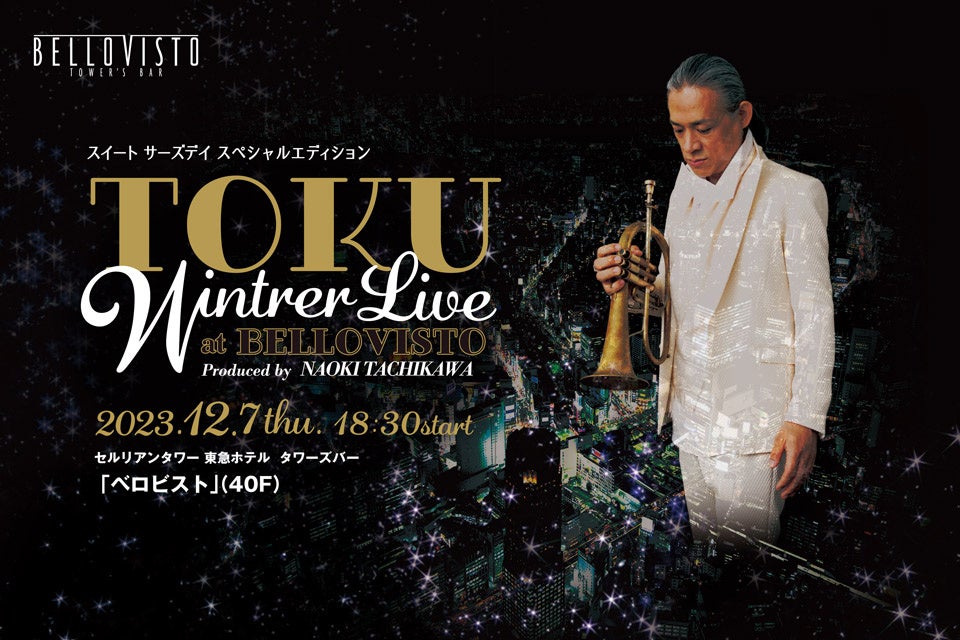 セルリアンタワー東急ホテル(東京都渋谷区、総支配人 武井 隆)では、2023年12月7日(木)、タワーズバー「ベロビスト」(40F)にて、ジャズアーティスト「TOKU」氏によるスペシャルライブ「TOKU Winter Live at BELLOVISTO」を開催いたします。ワンドリンク付、ワンドリンク&ディナー付の2プランをご用意いたします。