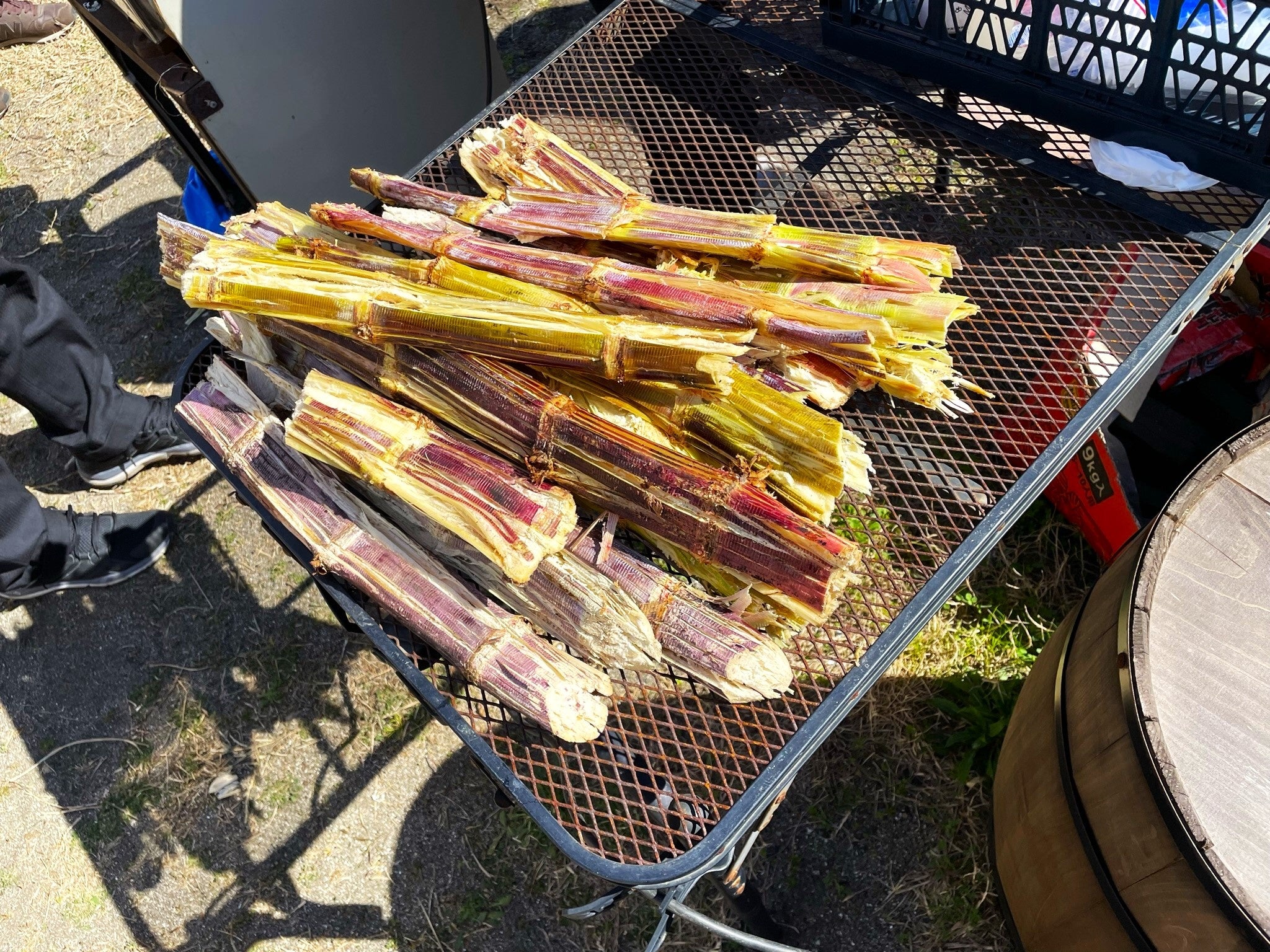 サトウキビの収穫と獲りたてのサトウキビを搾り、サトウキビ100%ジュースを試飲出来ます。