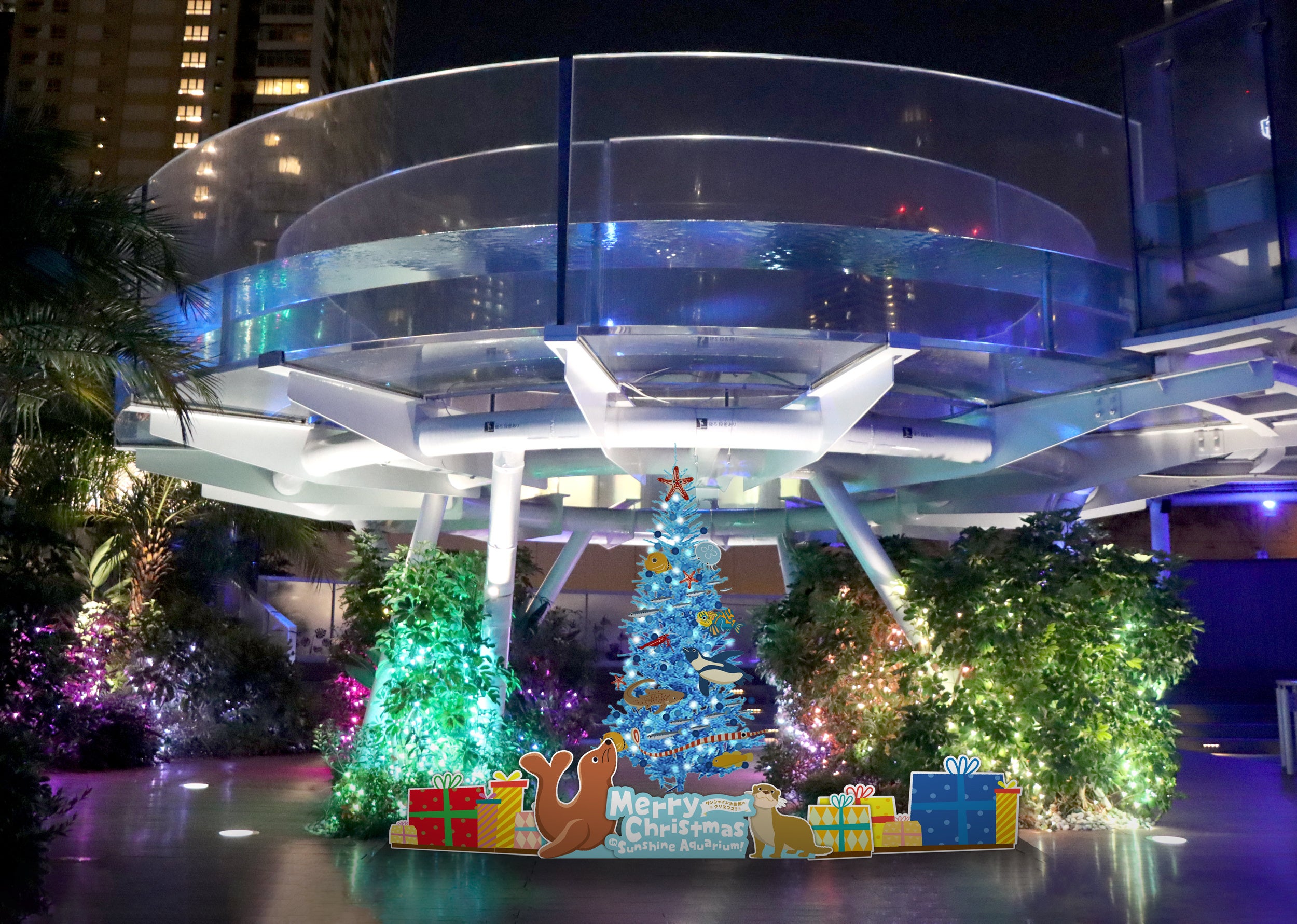 屋外エリア マリンガーデン「サンシャインアクアリング」水槽下に約2mのクリスマスツリーが登場します。