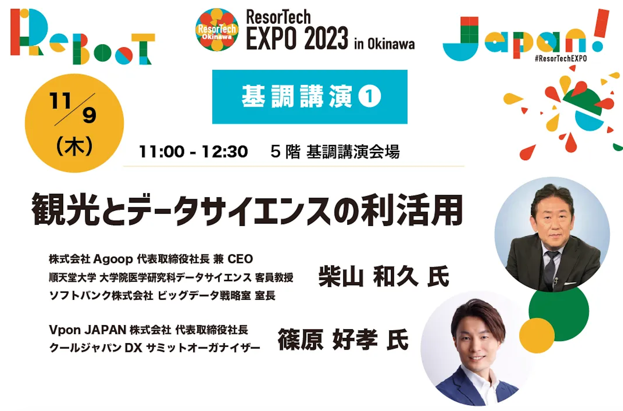 また、11月9日(木)11:00-12:30に開催する基調講演「観光とデータサイエンスの利活用」にVpon JAPAN代表取締役社長、篠原 好孝が登壇します。