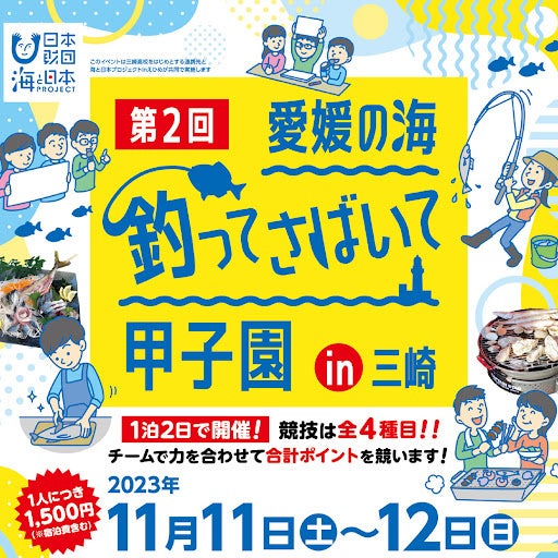 <1日目> 14:00 参加者集合、歓迎セレモニー 14:30 【種目①】海に関するクイズ 15:00 【種目②】わが町の海自慢と課題解決方法のプレゼン 17:00 【種目③】魚のさばき方対決 18:00 海鮮BBQ会交流会 21:00 就寝 <2日目> 5:00 朝食 6:00 【種目④】釣り 11:00 釣り終了 12:00 閉会式、表彰 12:30 イベント終了 ※JR八幡浜駅へ送迎 14:30 JR八幡浜駅解散 ※4種目の合計ポイントで順位を競います。 ※詳しくは、上記HPよりご確認ください。 |