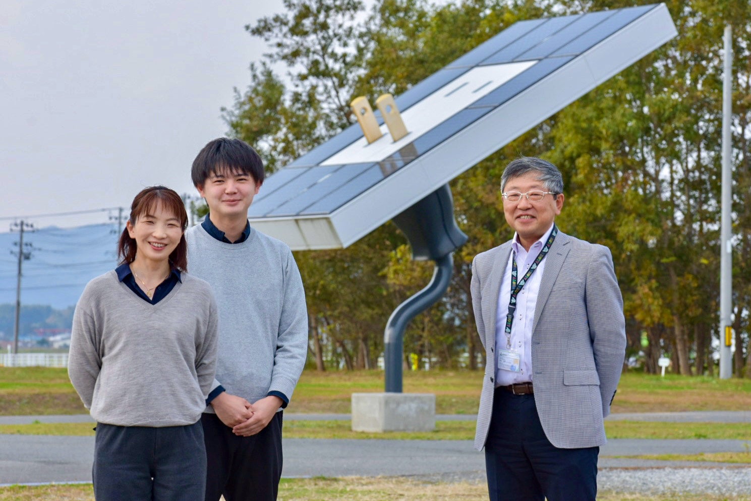(写真は左から、あすびと福島次世代育成チームの沖沢真理子チーム長と國分隆成さん、南相馬市商工観光部の野出参事)