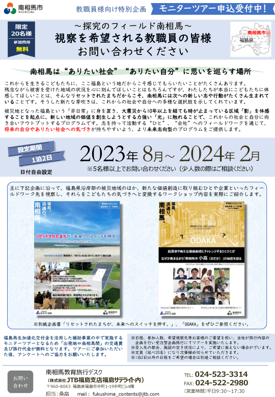 南相馬教育旅行デスク(JTB福島サテライト内)