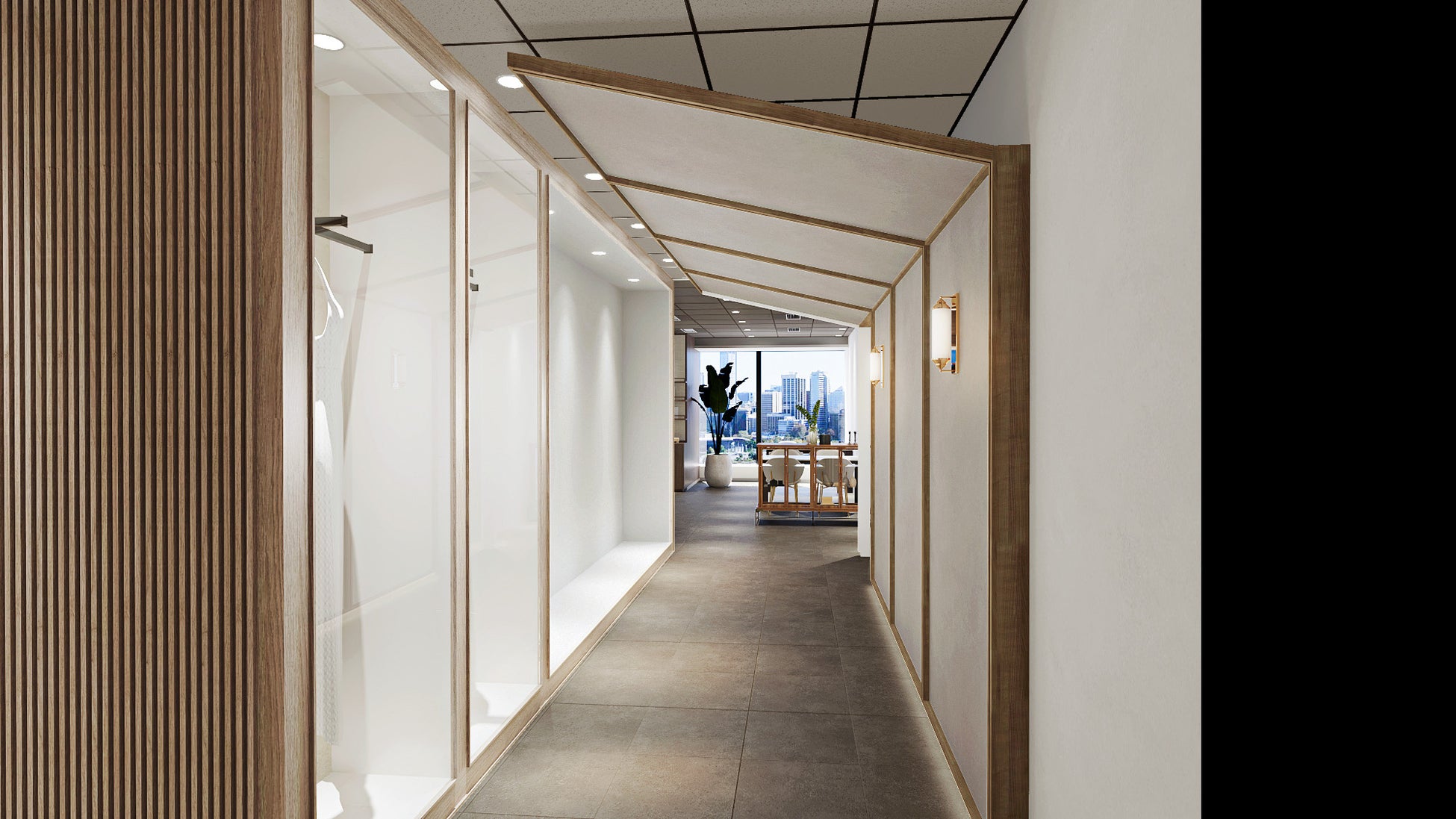 またエントランスからアプローチを抜けると、2面ガラス張りの自然光豊かなウエディングブースエリアが広がります。ウエディングブースは、高層階ならではの眺望を望む窓側ソファ席やサンルームをイメージした開放感あふれるブース席など、エリア毎に趣の異なる家具を配置することで訪れる度に気分を変えて打ち合わせを楽しむことができます。