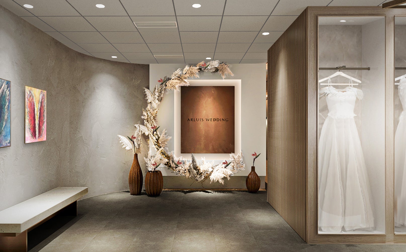 また、西日本最大級の一体型総合サロンとして、ウエディングブースが14ブース、うち1ブースが完全個室のVIPルーム、さらにはドレス専用個室が9ブースと、充実した接客環境を完備してお客様からの多様なリゾートウエディングニーズにお応えする、新宿本店に続くアールイズ・ウエディング2店舗目の旗艦店として誕生します。
